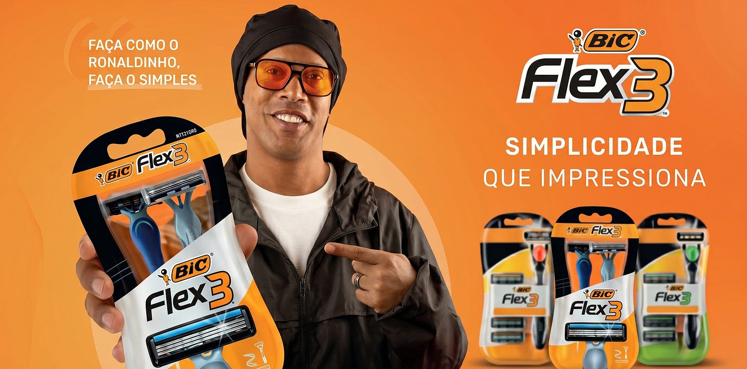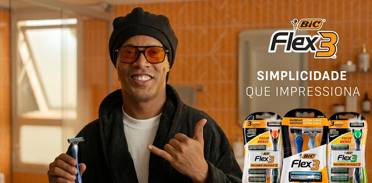 Para a BIC, a escolha vai além de alcance. Ronaldinho representa leveza, confiança e identificação popular, atributos que ajudam a aproximar um produto funcional de um território mais aspiracional. Ele não comunica apenas performance, mas atitude.