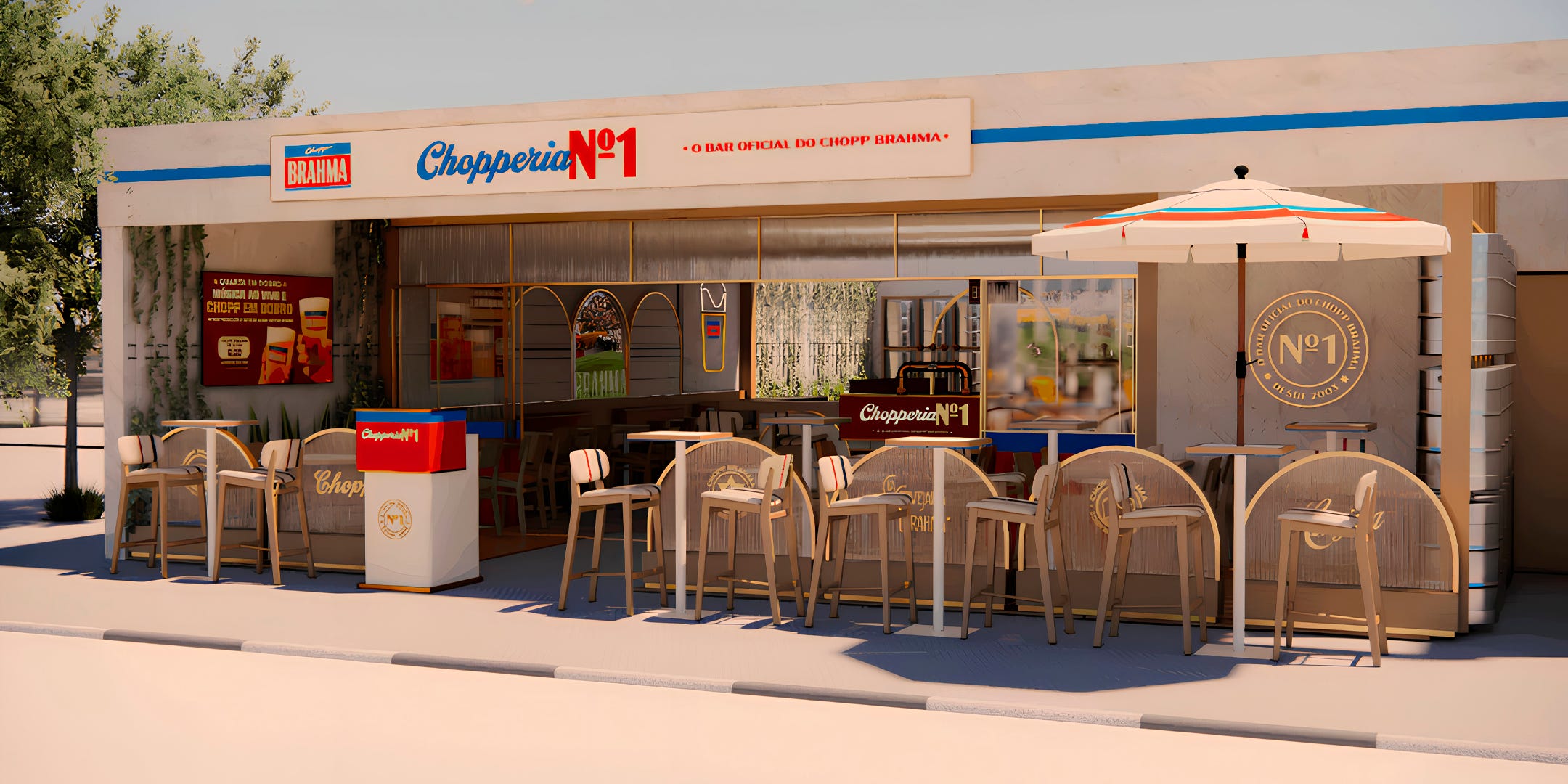 A transformação dos pontos físicos tem como objetivo reposicionar a marca a partir do ambiente onde ela é vivida. A arquitetura dos espaços foi concebida para refletir os valores que tornaram o chopp da Brahma icônico: autenticidade, convivência e sabor.