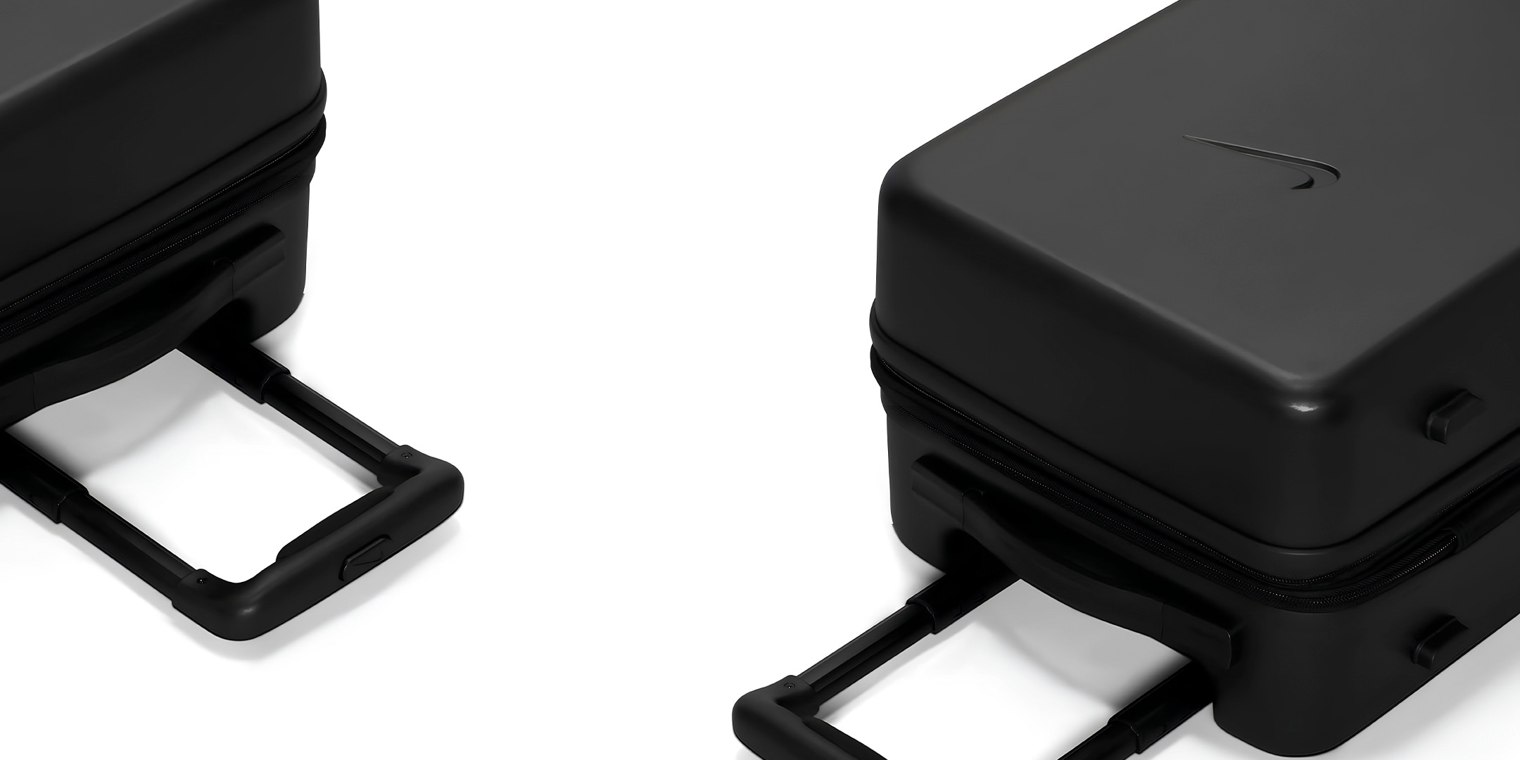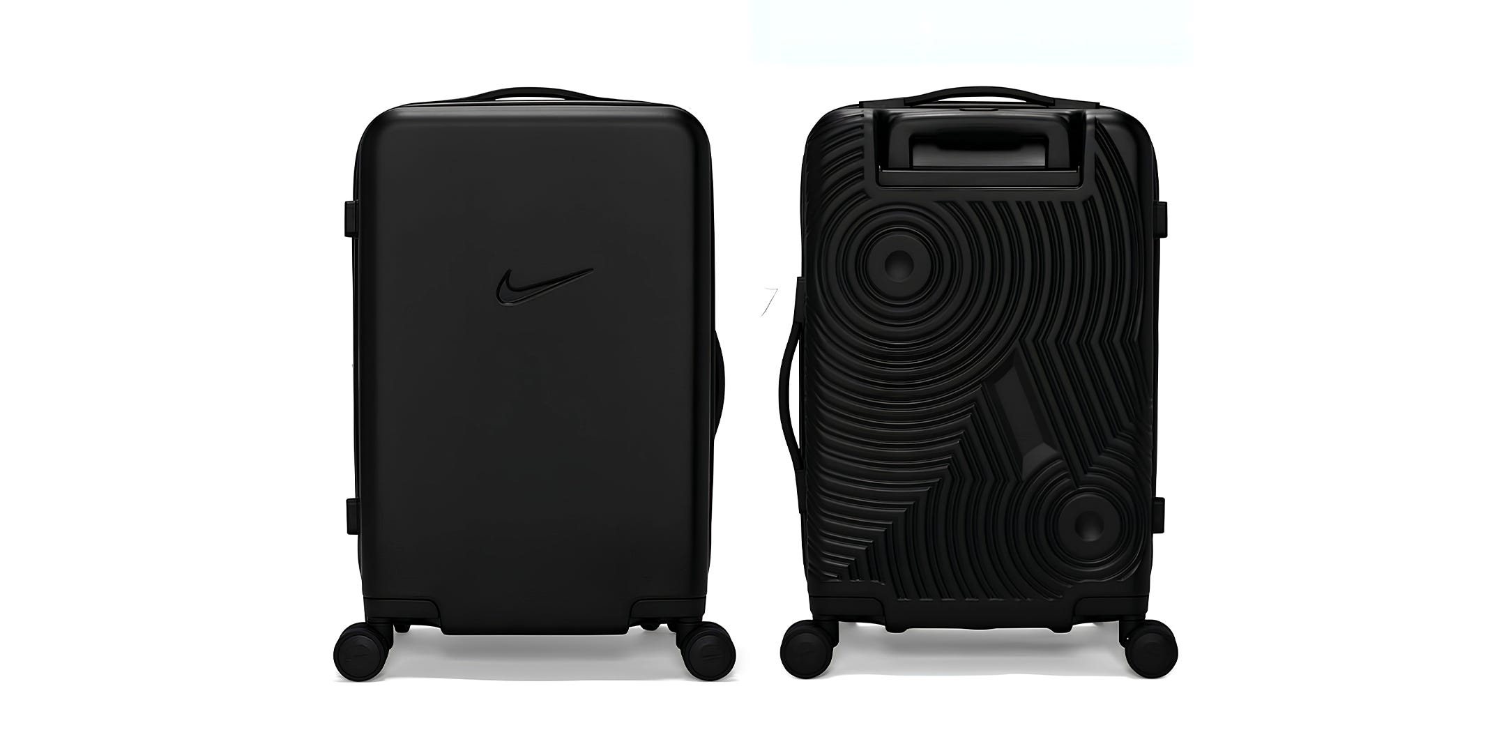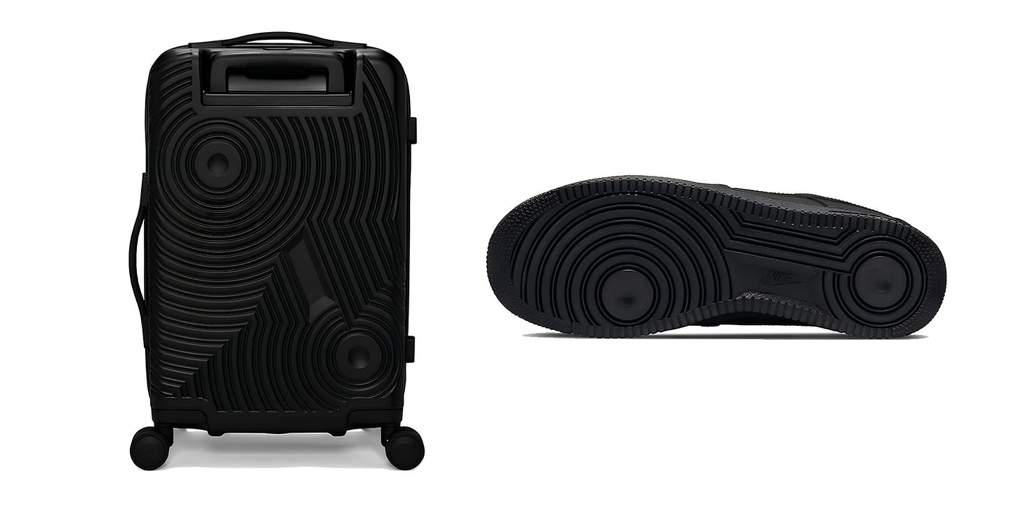 A coleção conta com duas opções de tamanho, 22 polegadas (ideal como bagagem de mão) e 29 polegadas (para despachar). O design “Triple Black” traz relevos circulares idênticos à sola do Air Force 1, criando textura e personalidade.