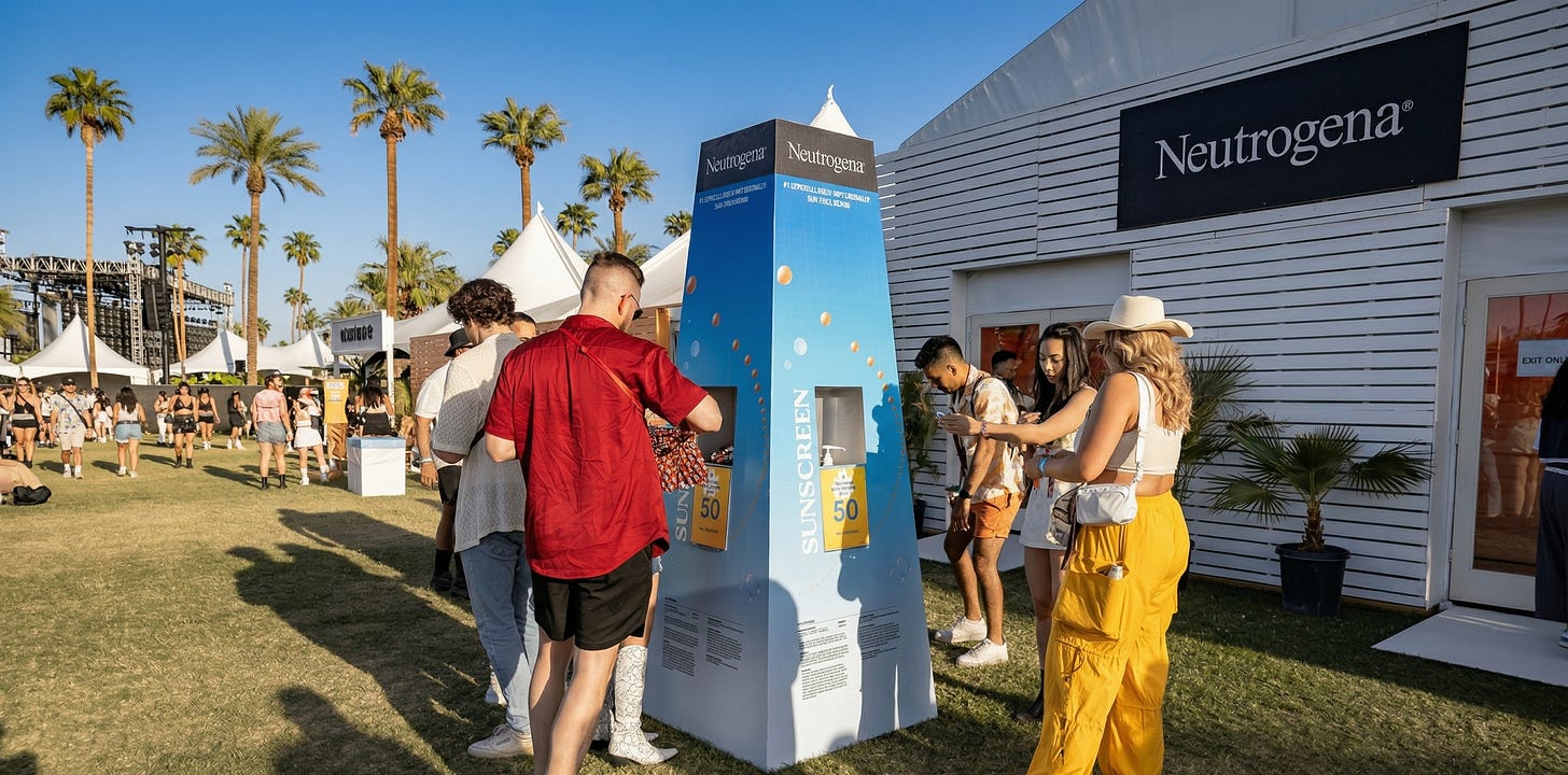 A Neutrogena amplia sua presença ao ocupar um território funcional com escala. Como patrocinadora de proteção solar, ativa pontos no festival, campings e até no aeroporto, com dispensers de SPF e distribuição massiva de produtos. A marca se conecta a uma necessidade real do público e transforma utilidade em lembrança.