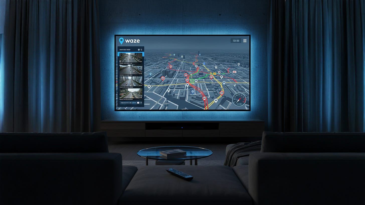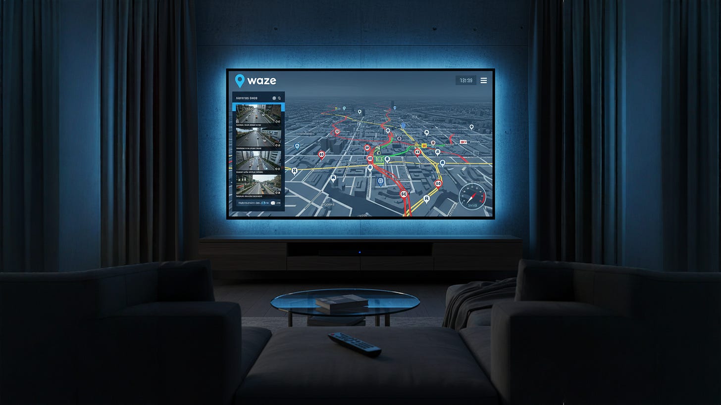 O Waze funcionaria como uma espécie de noticiário urbano 24h, com trânsito ao vivo, câmeras de rodovias e narrativas locais uma mistura de rádio AM, esportes e data visualization.