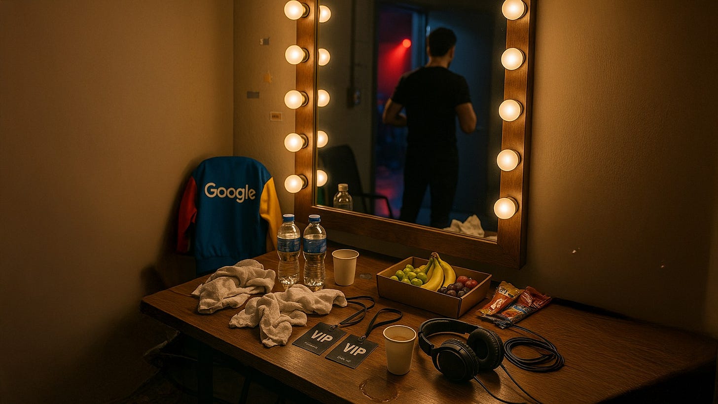 Imagina o McDonald's comandando um palco com luzes douradas e clima de celebração, enquanto o Google cria uma experiência interativa com dados, inteligência artificial e um show cheio de cores que mudam em tempo real.