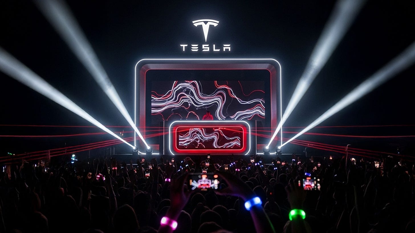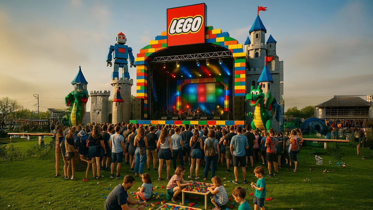 No line-up ainda teria a Nike, trazendo energia pura com performances intensas e coreografias que parecem treinos de alta performance; a Lego, com um palco montável e cenários que mudam de acordo com a música; e, claro, a Tesla, entregando um espetáculo futurista com tecnologia de ponta e shows sincronizados com carros elétricos. Bora sonhar com esse festival?
