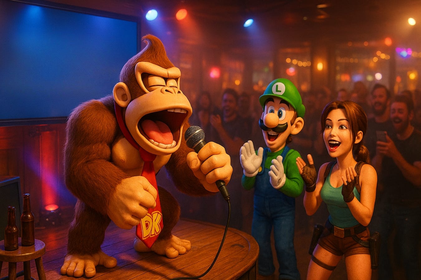Depois de salvar reinos, derrotar vilões e zerar fases, os ícones dos games também merecem um descanso. Imagina esse encontro épico entre drinks, karaokê e muita zoeira gamer!
