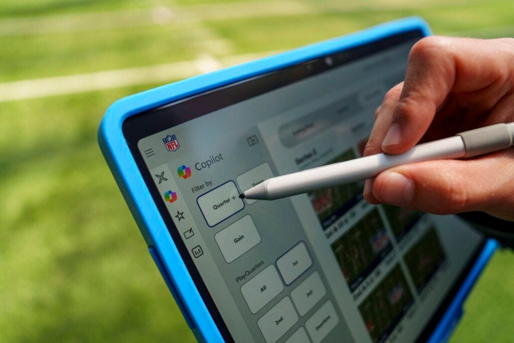 Mais de 2.500 PCs Surface Copilot+ já foram distribuídos para os 32 times, incluindo jogadores, técnicos e staff. Esses dispositivos alimentam o Sideline Viewing System (SVS), que oferece imagens e dados em tempo real para ajudar na leitura de jogadas durante as partidas.