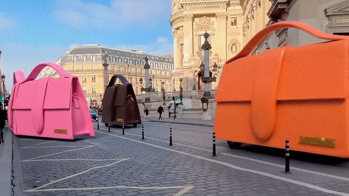 A Balenciaga trocou seu desfile físico por um episódio dos Simpsons, onde os personagens desfilavam sua coleção, uma fusão de moda e cultura pop que virou viral instantâneo. A Jacquemus, por sua vez, colocou bolsas em escala gigante desfilando sozinhas por Paris, transformando produto em performance visual.