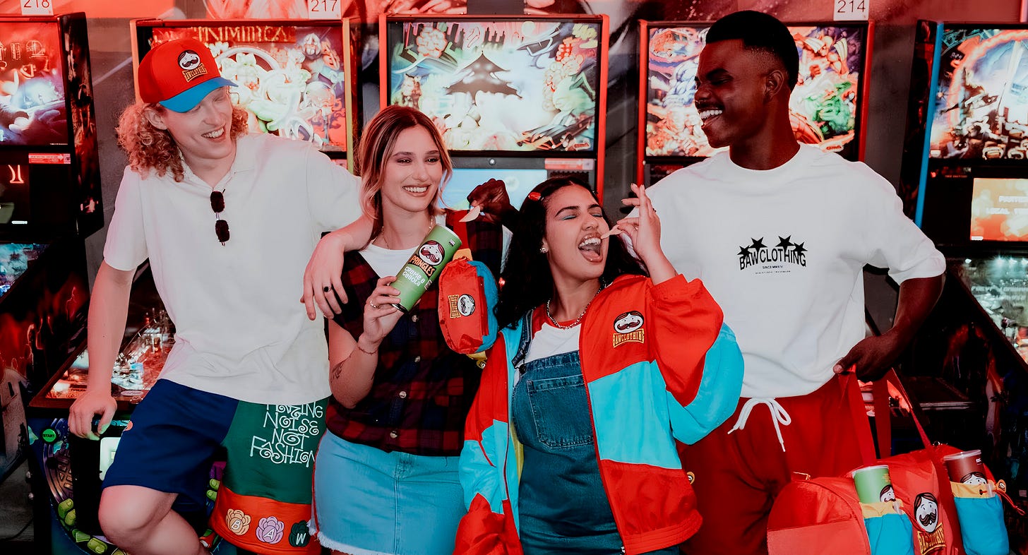 A parceria com a BAW Clothing reforça essa estratégia. Ao se associar a uma marca brasileira de streetwear reconhecida por dialogar com cultura jovem, Pringles amplia presença para além da gôndola.