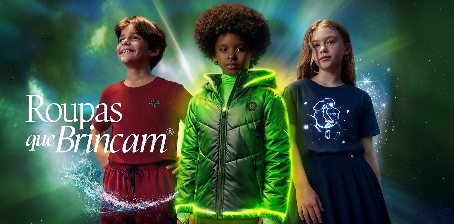 A Reserva Mini parte de um ponto pouco explorado na moda infantil: a criança não vê a roupa como produto final, mas como parte da brincadeira. A coleção “Roupas que Brincam” materializa isso ao transformar camisetas e peças em elementos ativos de interação.